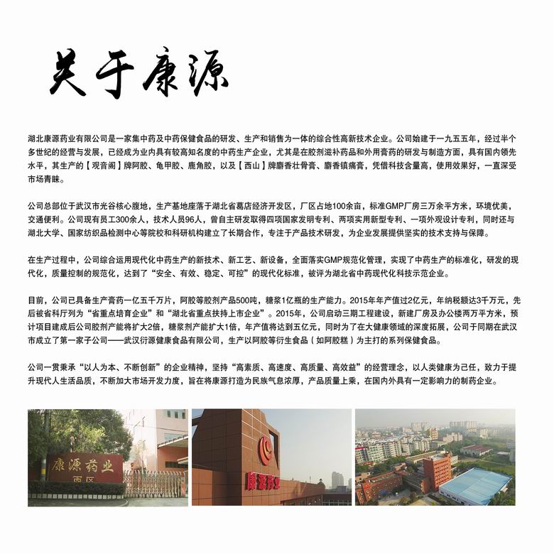 康源藥業公司坐落在中國藥谷——湖北省葛店經濟技術開發區,占地面積七十余畝,擁有生產設備一百多臺套,建有標準的 GMP 廠房一萬余平方米。現有員工 150 , 其中專業技術人員 40 名,中級以上專業技術人員 20 多名。公司建立了非常完善的生產管理制度和嚴密的質量保證體系,質保部化驗室配有先進完備的檢驗設備,員工上崗前都要經過嚴格的培訓,藥品生產嚴格按照 GMP 的要求進行,員工的一切行為都依規章制度而行,廠區環境優美,生產、生活秩序井然。康源是一個名副其實的現代化花園工廠。